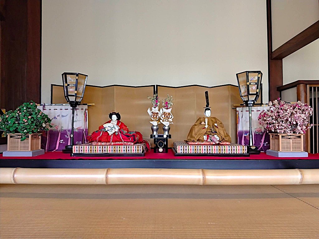 離れ座敷で、ぜひお雛さま・お内裏さまとご一緒にお庭を愛でていただけたらと思います。皆さまのご来館をお待ちいたしております。