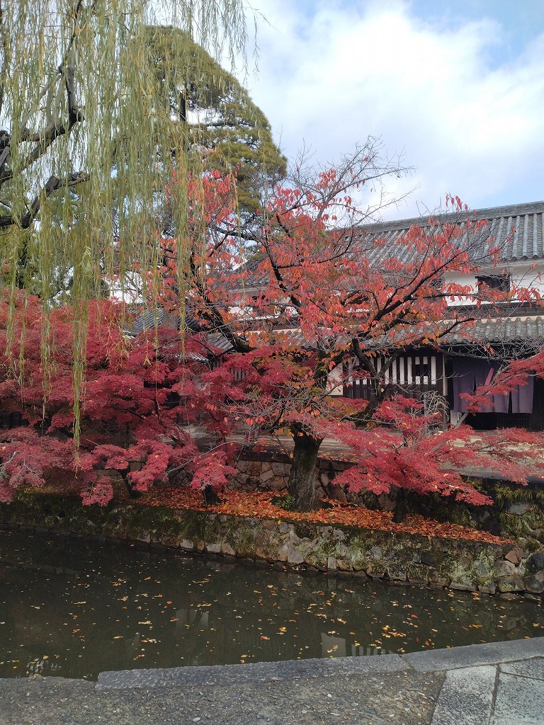 玄関前の紅葉は、今橋から撮影なさる観光客の皆さまのお気に入りスポットになっているようです。撮影を済ませると次にお待ちの方へササっと場所をお譲りになるご様子もあって、美観地区を訪れるお客さまはお優しい方が多いのかもしれませんね。