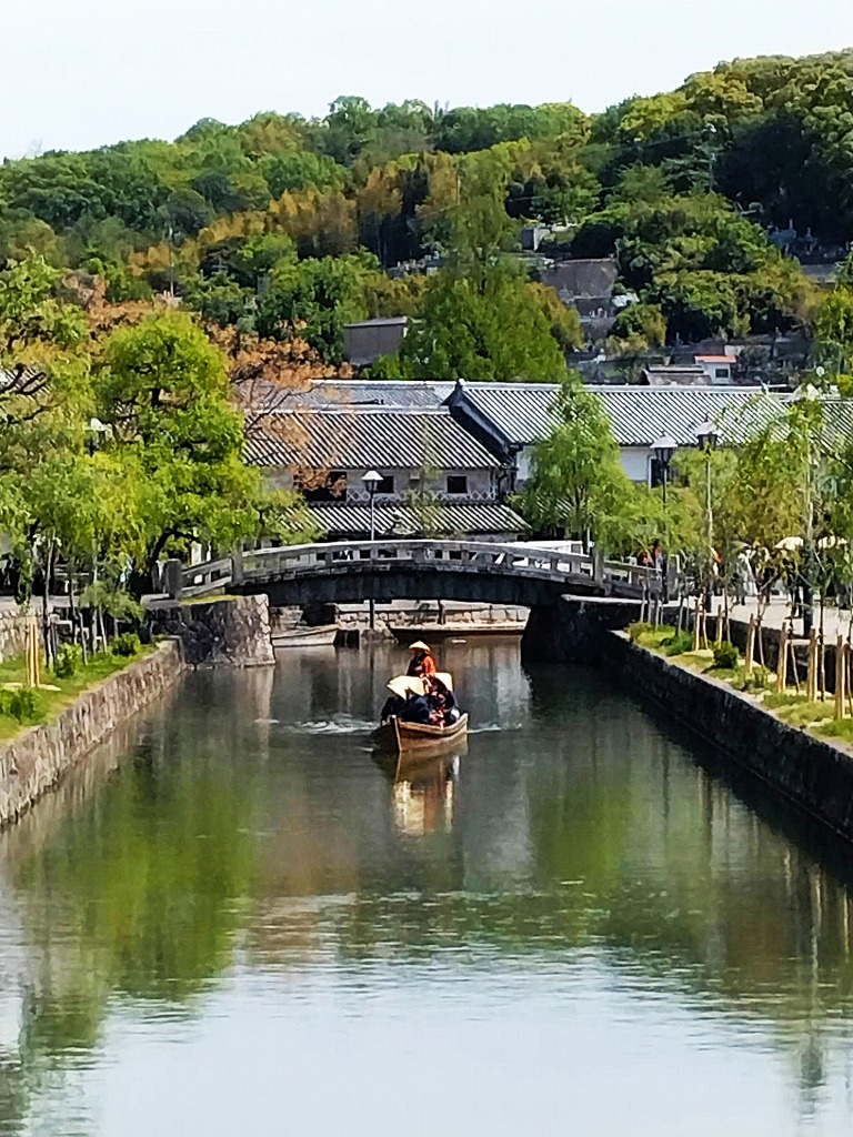 語らい座大原本邸の内も外も、目に眩しい光の季節。倉敷川もキラキラ光っています。まだ暑くもなくて、観光にはぴったり。