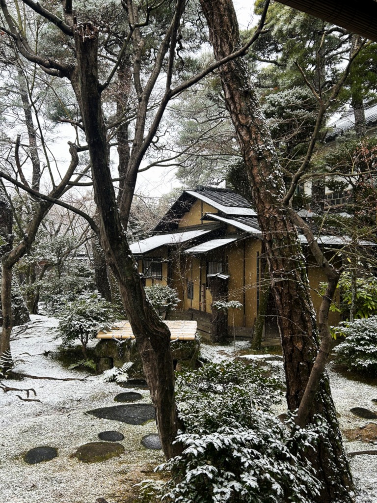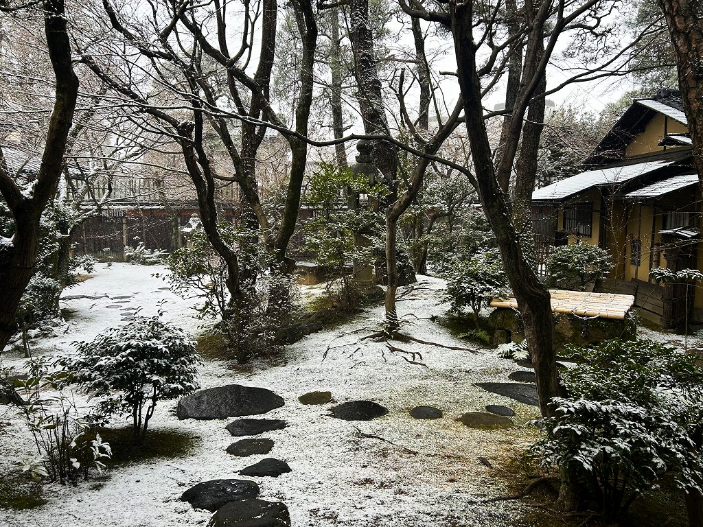 雪の離れ座敷 2026.02.10 ホーム > 投稿一覧 > 新着情報 > お知らせ > 雪の離れ座敷 HOME ブログ お知らせ , 投稿一覧 , 新着情報 雪の離れ座敷 雪の離れ座敷 立春とは名ばかりで、厳しい寒さが続いております。滅多に降らない倉敷にも雪が降りました。 離れ座敷も雪景色。まるで水墨画のようです。 踏み石のところには雪が積もらないのは、石は土にくらべて熱伝導率が高いからなのだそうです。地中の温度を地表面へ伝えているのですね。 “If winter comes, can spring be far behind?” 冬来たりなば春遠からじ ――春の訪れが待ち遠しいですね。 3月15日公演「大原本邸ベヒシュタインコンサート」